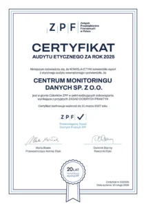 Z satysfakcją informujemy, że pozytywnie przeszliśmy proces weryfikacji i audytu etycznego przeprowadzonego przez Komisję Etyki przy Związku Przedsiębiorstw Finansowych w Polsce.